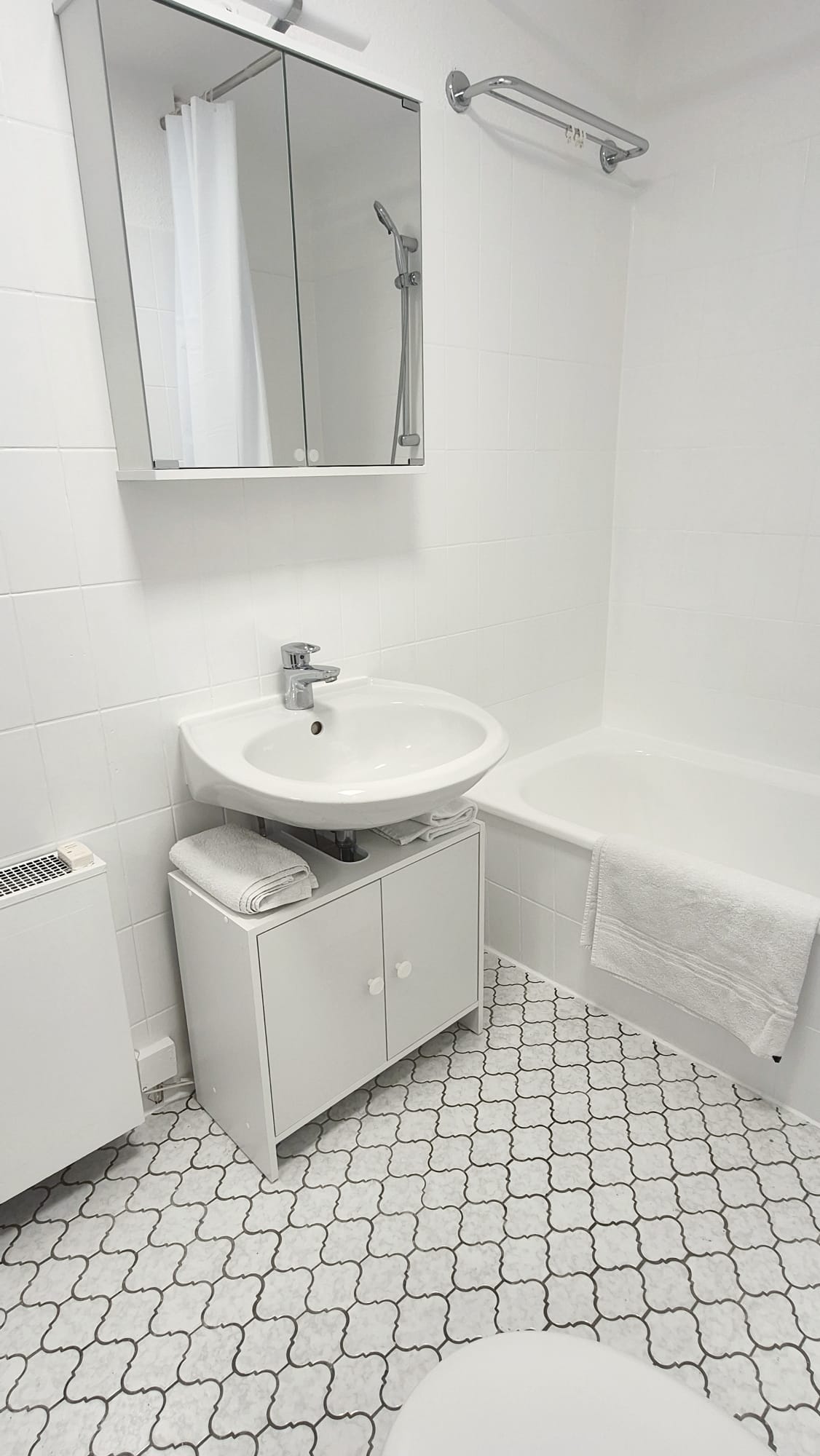 Badezimmer mit Badewanne und Duschmöglichkeit rundet das
