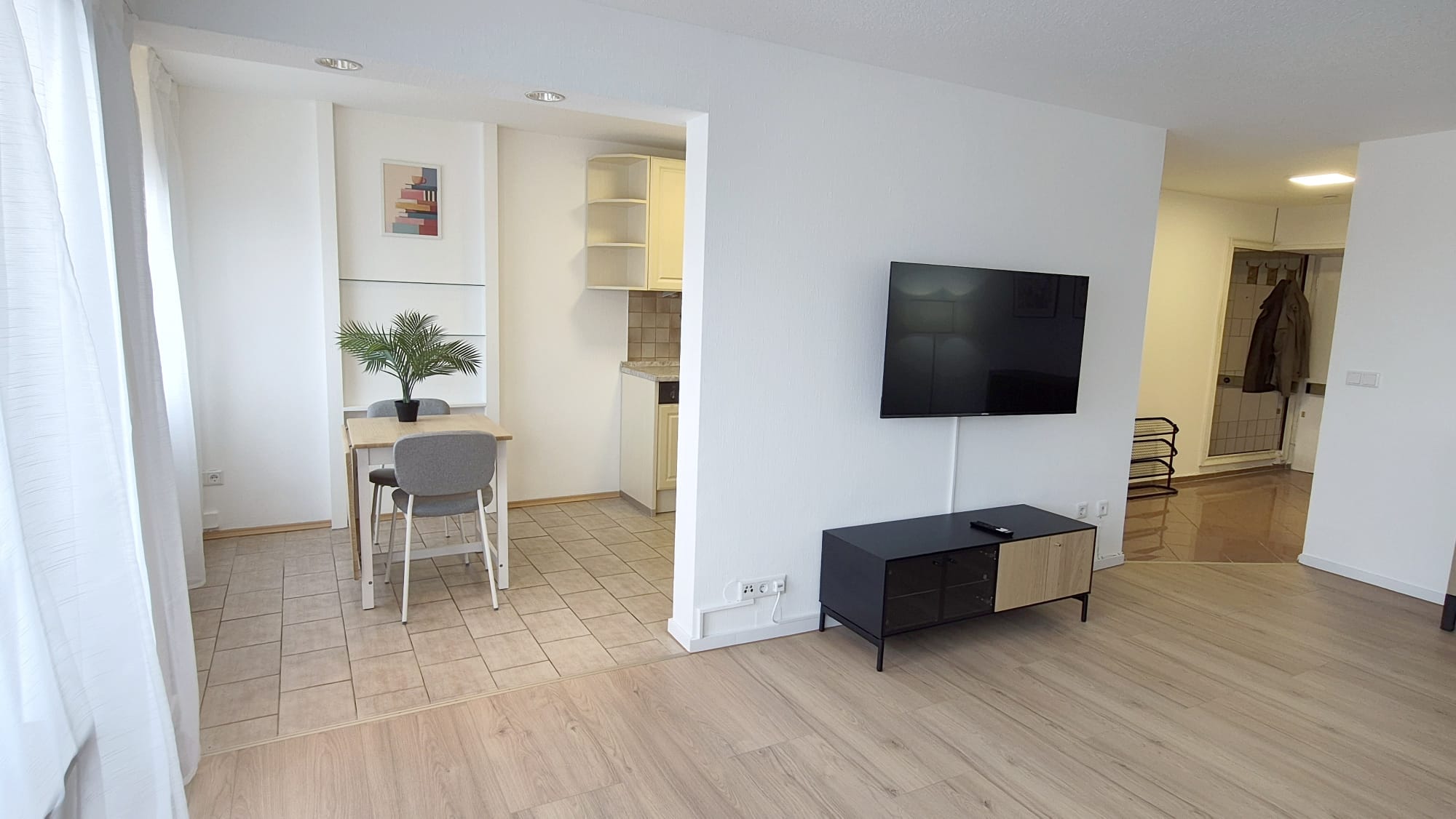 Detail eingerichtet. Der warme Boden in Holzoptik zieht sich