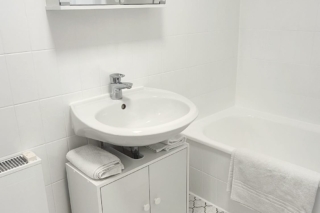 Badezimmer mit Badewanne und Duschmöglichkeit rundet das