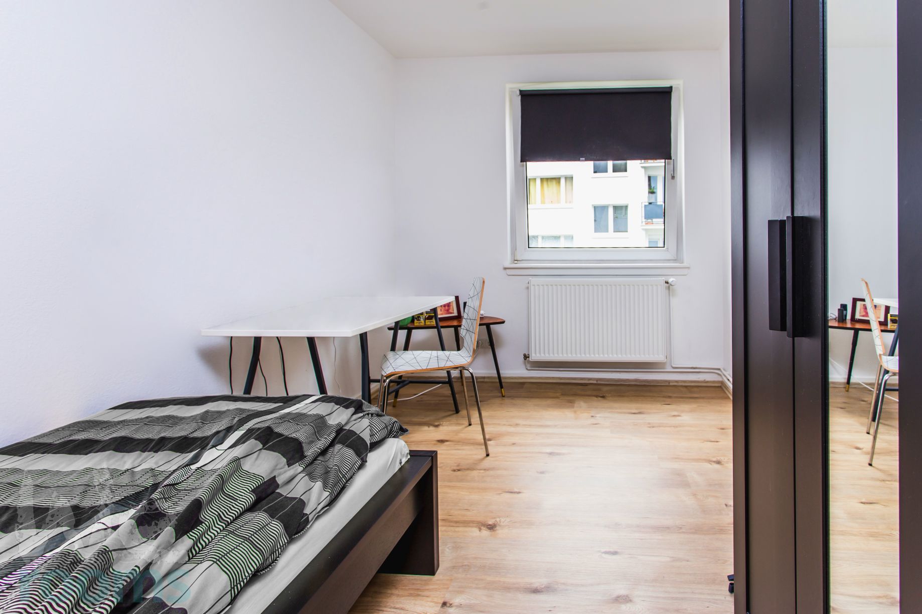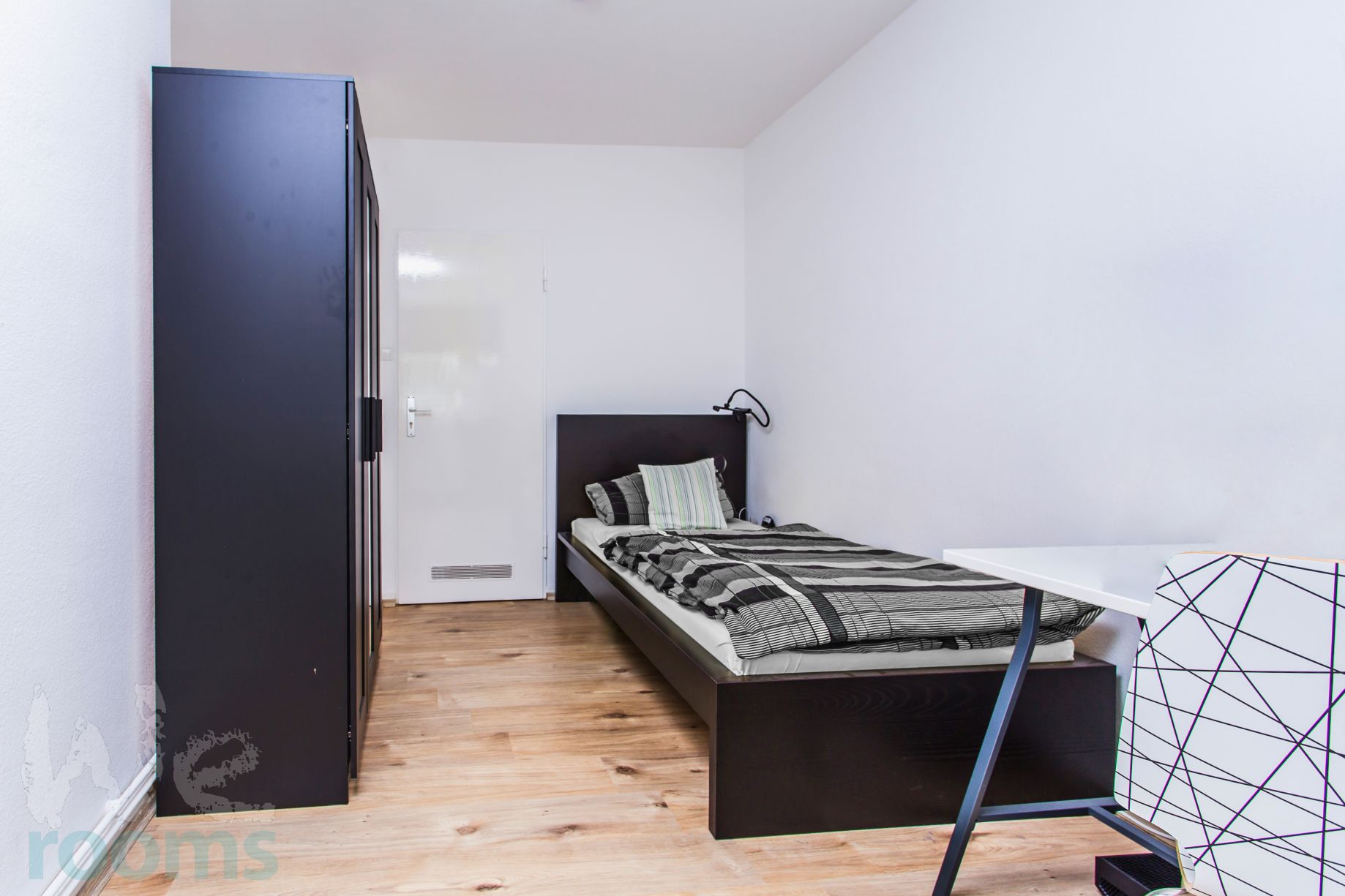 Die Zimmer modern eingerichtet mit einem Bett, Kleiderschrank, Nachttisch, Schreibtisch, Schreibtischstuhl, Bettzeug (Kopfkissen 80×80, Bettdecke 140×200) und die passende Bettwäsche. Darüber hinaus verfügt die WG über einen zentralen kostenlosen WLAN Zugang (50.000 kBit/s) für alle WG Bewohner.