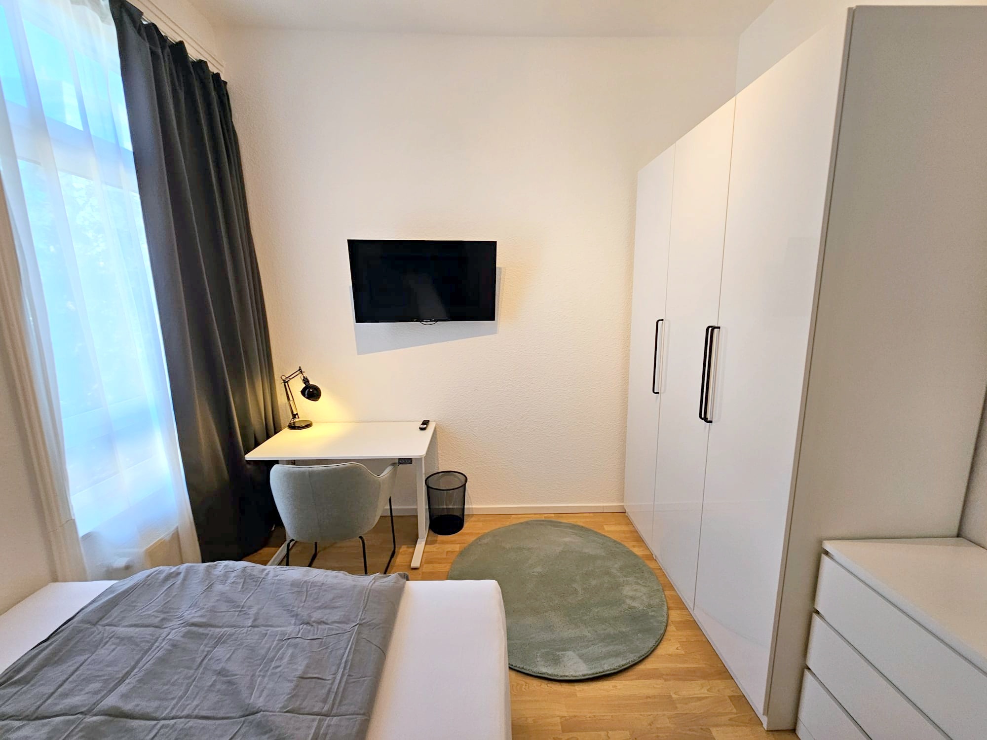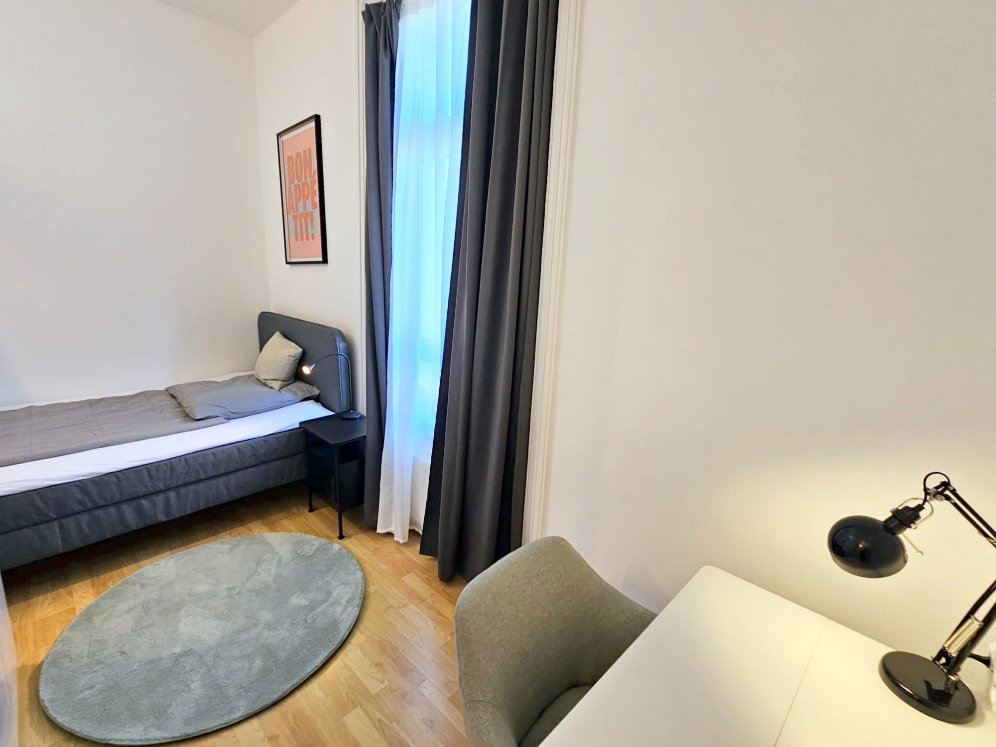 Alles modern möbliert, jedes Zimmer natürlich einzeln absperrbar. Zimmerausstattung (alle 4 Zimmer): Großes, gemütliches 1.40m Boxspringbett Verdunkelungsvorhänge und helle Fensterfronten für viel Tageslicht Großer Kleiderschrank in Hochglanzoptik Schreibtisch mit Stuhl und Lampe – ideal fürs Arbeiten oder Lernen Teppichläufer, moderne Beleuchtung und Wanddeko