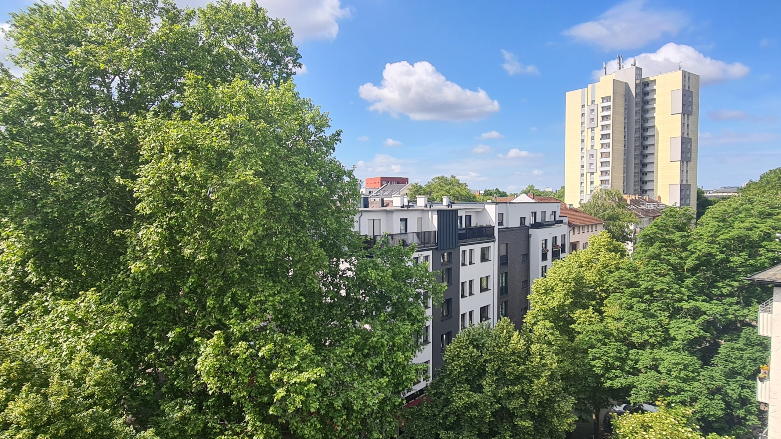 Die Uhlandstr. im Frankfurter Ostend eine kleine Seitenstraße, aufgrund der vielen Bäume fast im Alleencharakter. Die S-Bahn-Station „Ostendstraße“ mit eigenem Ausgang „Uhlandstr.“ keine 5