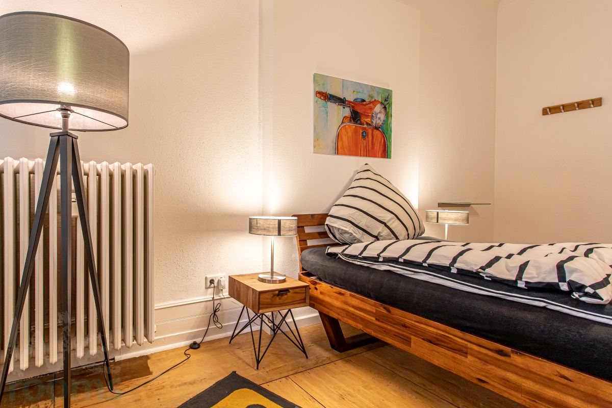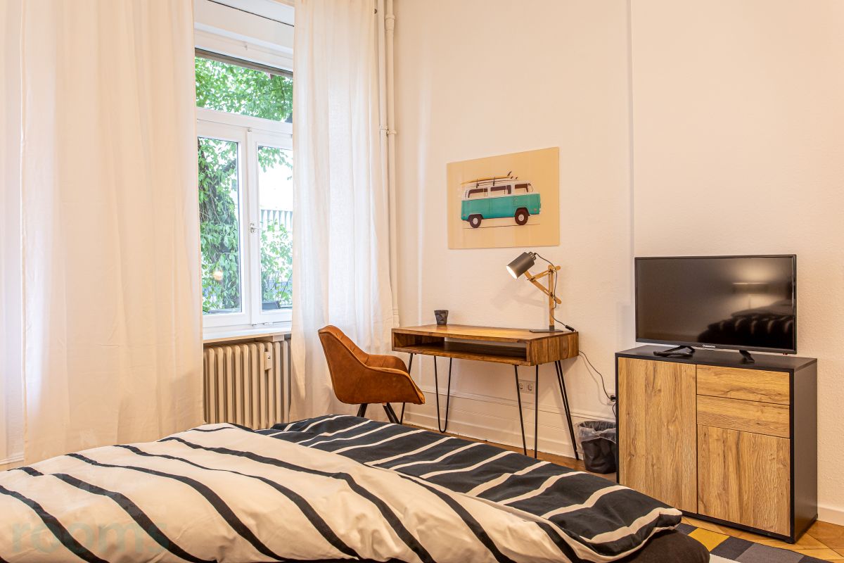 Alles nagelneu und modern möbliert, jedes Zimmer wohnlich mit Gardinen, Bildern, bequemem Bett, Bettzeug und Bettwäsche, Nachttisch, Kleiderschrank, Schreibtisch, Stuhl und TV ausgestattet.