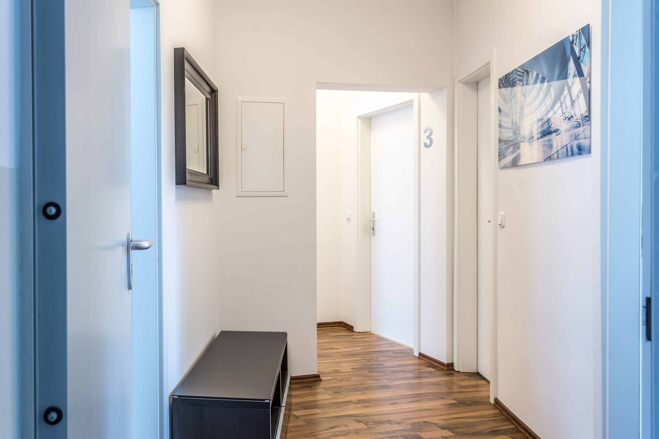 Im modernisierten Anbau im 2. Obergeschoss ist diese neue 3er WG geschaffen worden und nun stehen hier 1  Einzelbett-  und 2 Doppelbettzimmer zur Anmietung bereit.