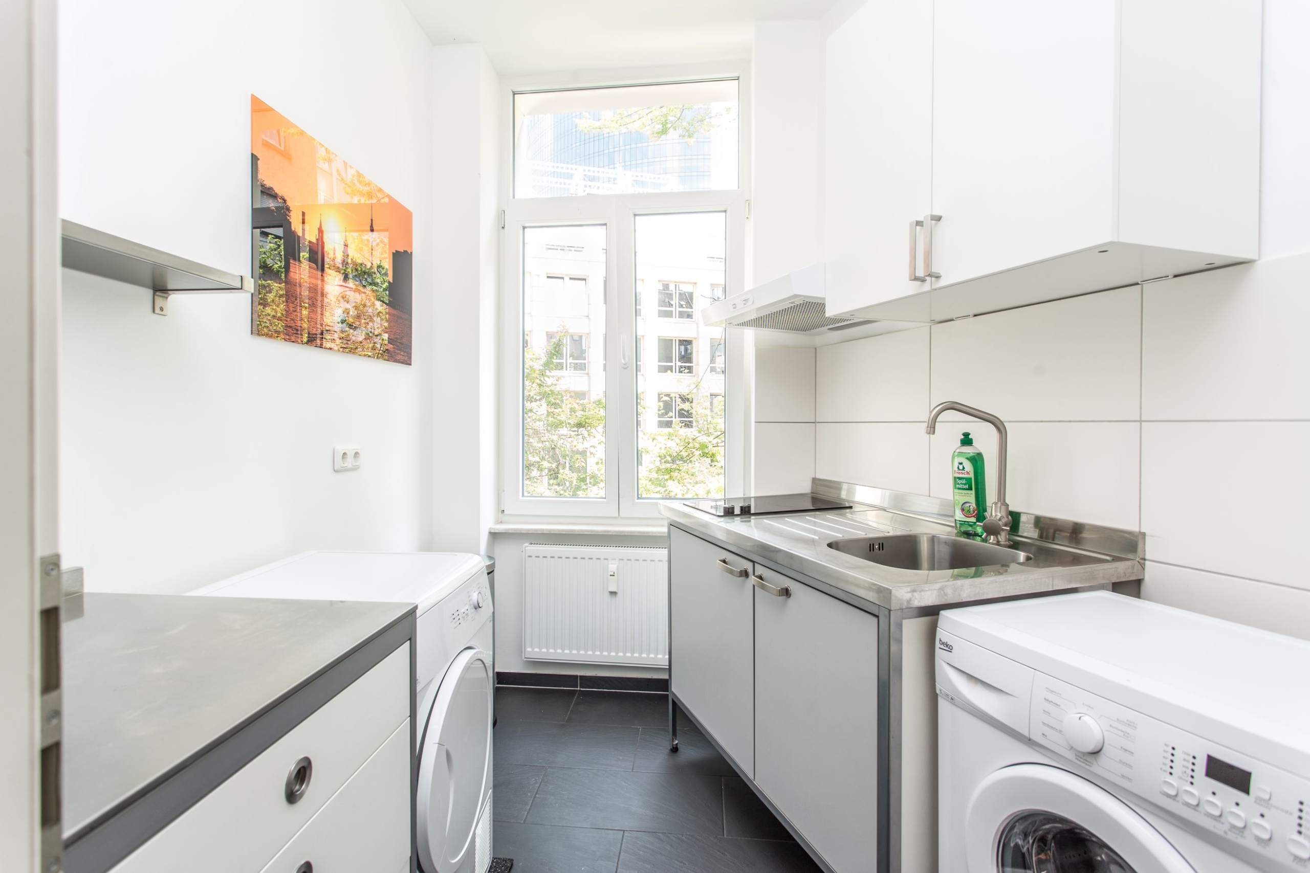 Die Wohnung ist sehr gemütlich eingerichtet und mit modernem Duschbad und kleiner gemeinsamen Küche, welche schon für die Bewohner bestückt ist, ausgestattet.Eine Waschmaschine und Trockner sind selbstverständlich auch in der WG Wohnung vorhanden.