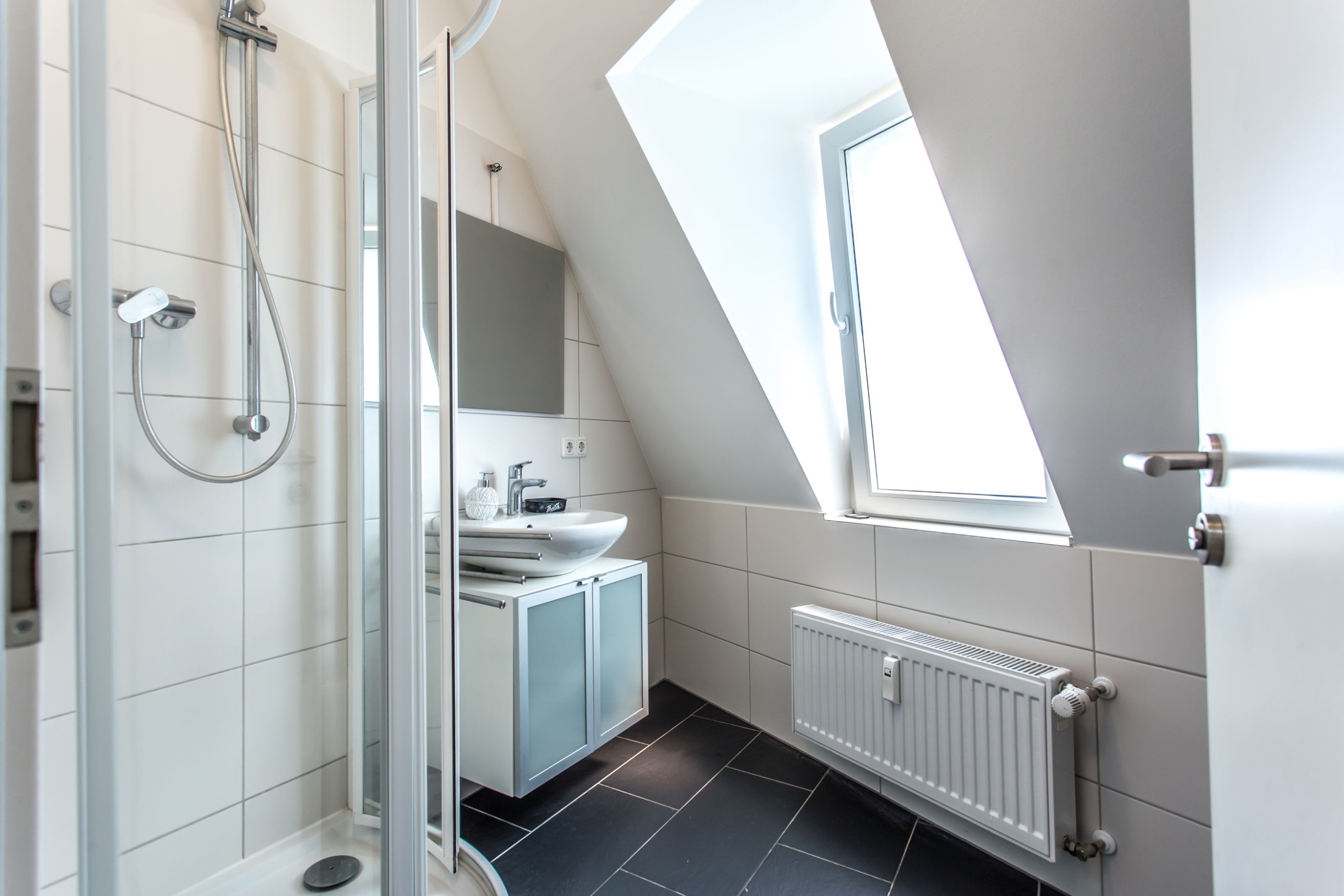 Die Wohnung ist sehr gemütlich eingerichtet und mit modernem Duschbad und kleiner gemeinsamen Küche, welche schon für die WG Bewohner bestückt ist, ausgestattet.