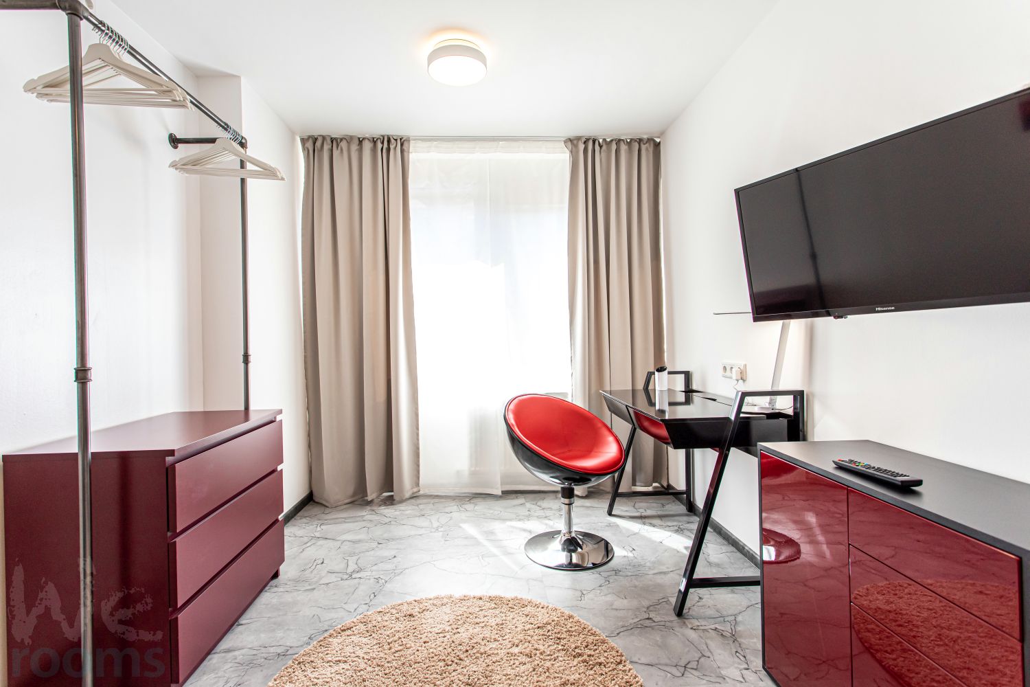 Insgesamt stehen auf der Etage 6 modern möblierte Zimmer zur Verfügung, welche einzeln vergeben werden. Die Wohnung für maximal 6 Bewohner ist mit einem hochwertigen Boden, weißen Wänden und zwei modernen Bädern in schicker Optik mit Dusche und WC zur gemeinsamen Nutzung ausgestattet.
