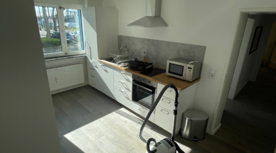 Hier erwartet die neuen Bewohner eine modern möblierte 5-Zimmerwohnung mit bereits ausgestatteter Küche mit Tisch und Sitzgelegenheiten und 1 helles Badezimmer. Ein Sofa im großräumigen Flurbereich lädt auch zum Verweilen ein.