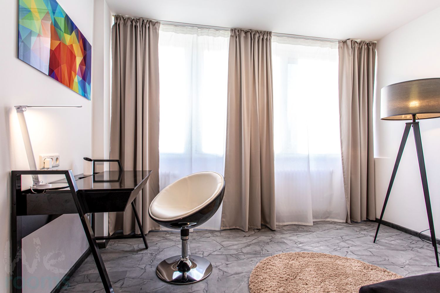 Die Zimmer beinhalten ein geräumiges Bett, einen offenen Kleiderschrank, Flachbild-TV, Nachttischablage, Schreibtisch, Schreibtischstuhl, Bettwäsche (Kopfkissen 80×80, Bettdecke 140×200) und die passenden Bettbezüge. Zusätzlich ist jedes Zimmer der Etage mit einem eigenen WLAN-Router mit ausgestattet.