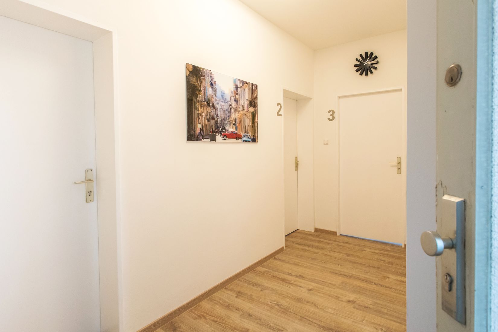 Alles modern möbliert, jedes Zimmer natürlich einzeln absperrbar und wohnlich mit Gardinen, Bildern, Boxspringbett inkl. Bettzeug und Bettwäsche, Nachttisch, Kleiderschrank, Schreibtisch, Stuhl und TV ausgestattet, die Gemeinschaftsräume: Küche inkl. Waschmaschine, Trockner, Ceranfeldherd mit Backofen, Kühl-Gefrierkombi, Spülmaschine und einer Grundausstattung an Besteck und Geschirr, auch Bügeleisen und Bügelbrett sind vorhanden.
