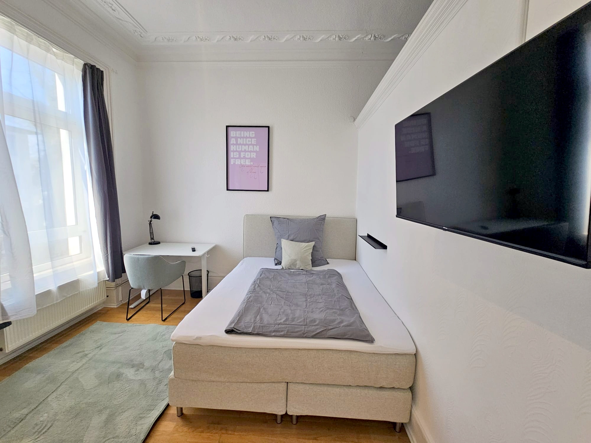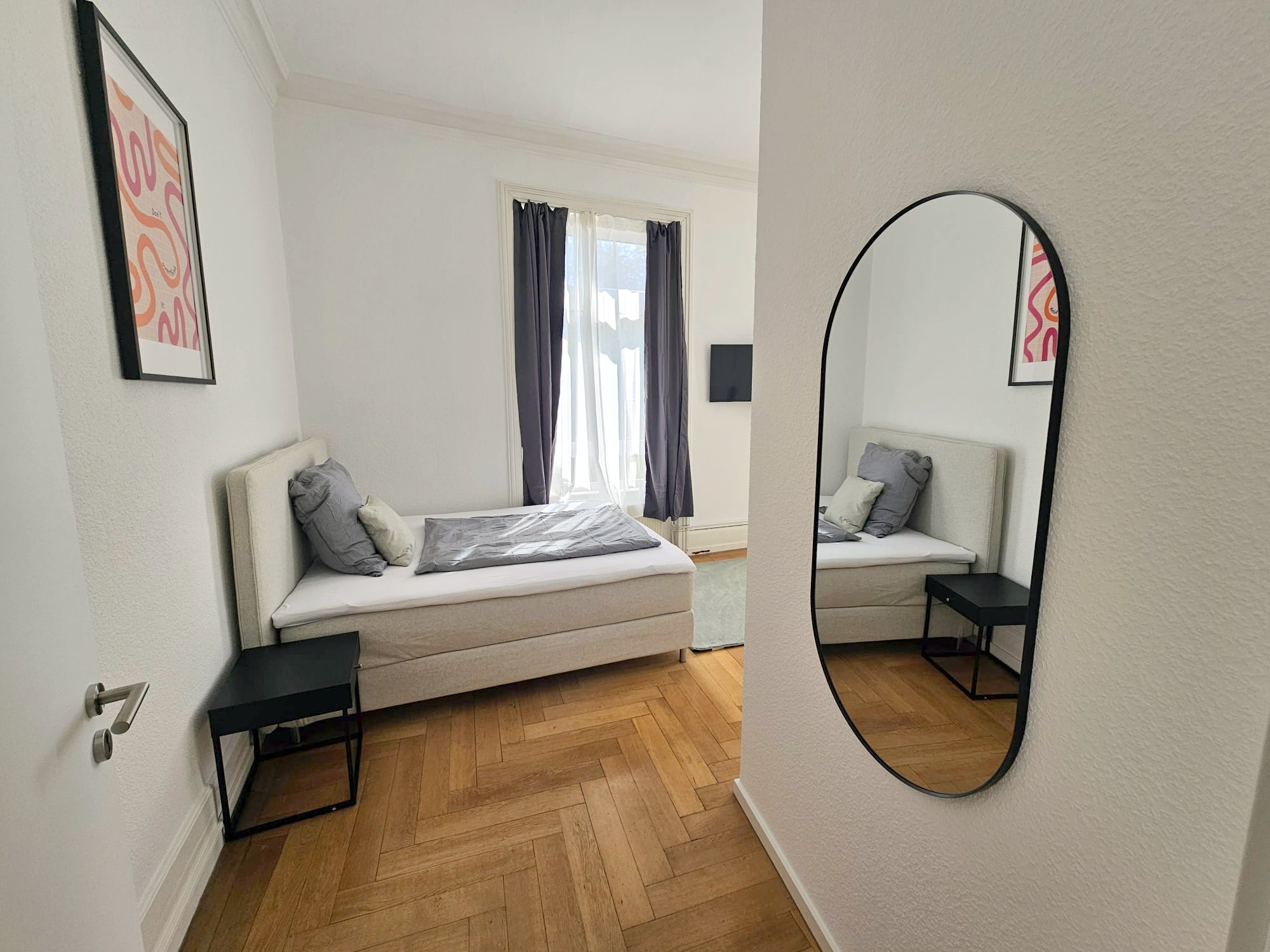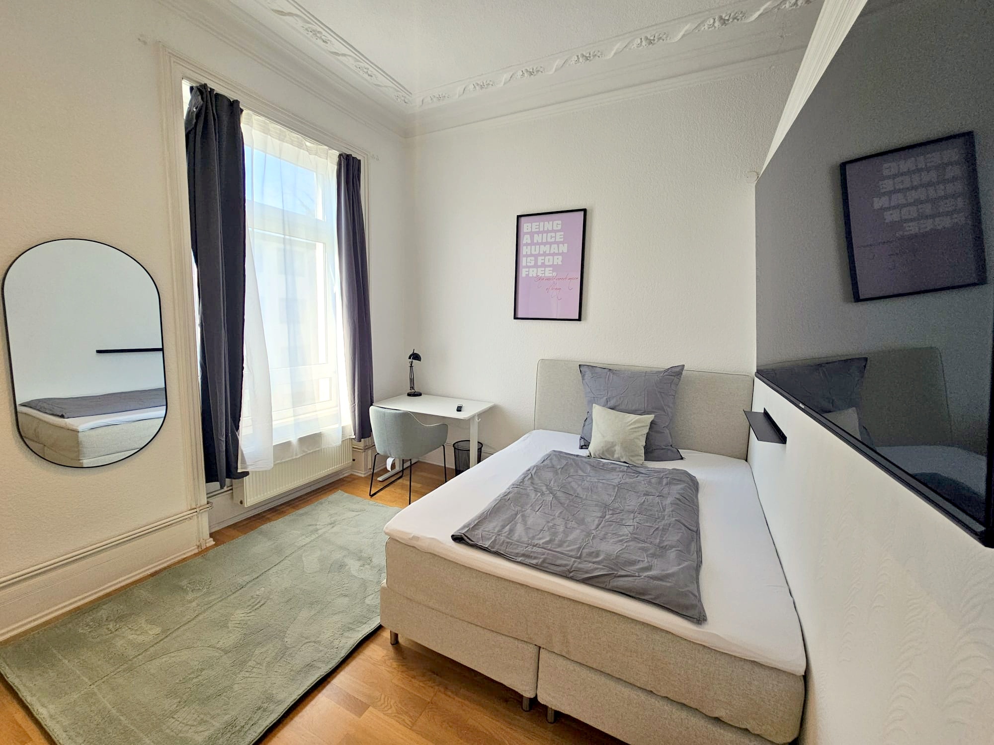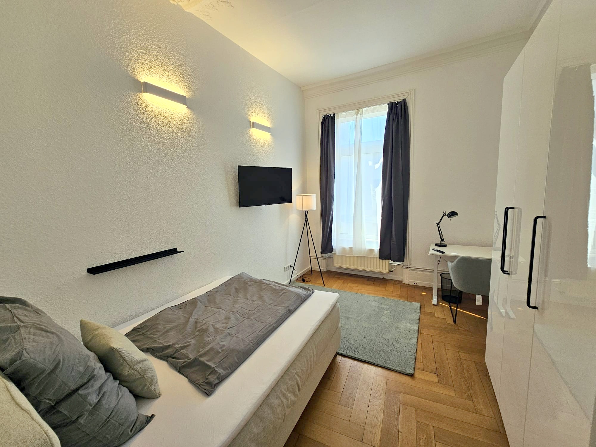 Alles modern möbliert, jedes Zimmer natürlich einzeln absperrbar. Zimmerausstattung (alle 4 Zimmer): Großes, gemütliches 1.40m Boxspringbett Verdunkelungsvorhänge und helle Fensterfronten für viel Tageslicht Großer Kleiderschrank in Hochglanzoptik Schreibtisch mit Stuhl und Lampe – ideal fürs Arbeiten oder Lernen Teppichläufer, moderne Beleuchtung und Wanddeko