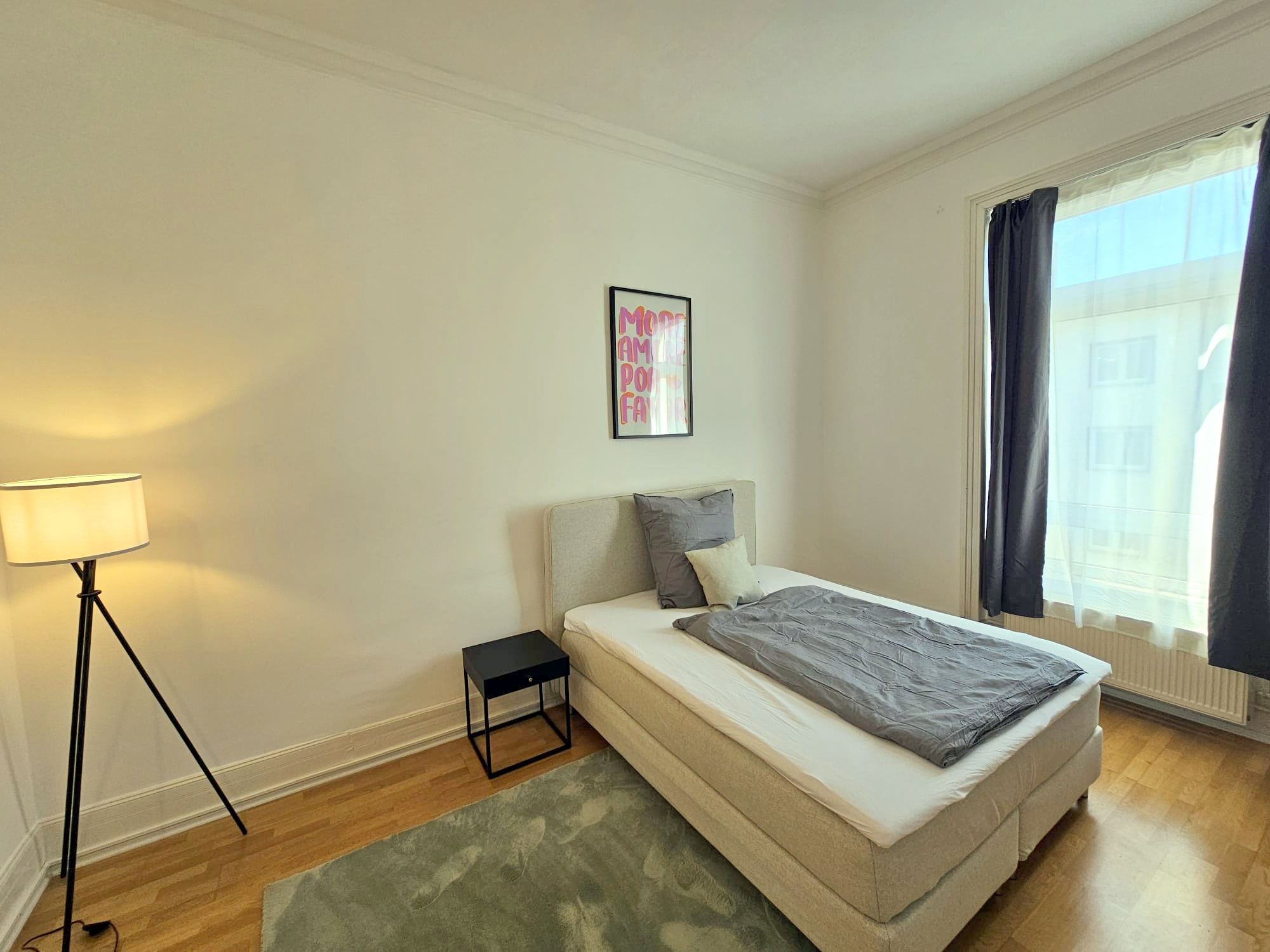 Die vier Bewohner teilen sich die Nutzung von Küche und Bad. Die Wohnung wurde vollständig modernisiert und mit stilvollen, aufeinander abgestimmten Möbeln eingerichtet.