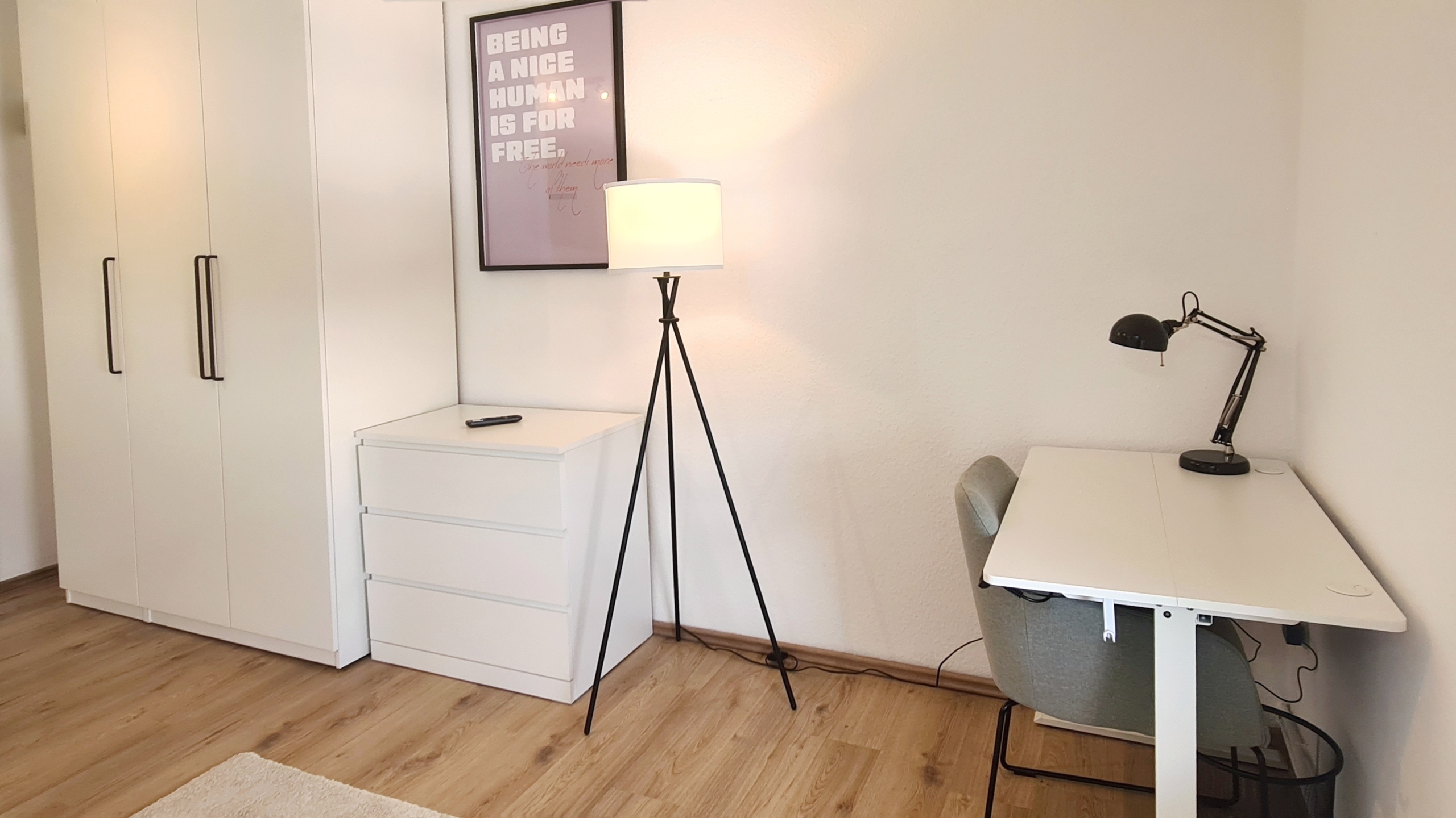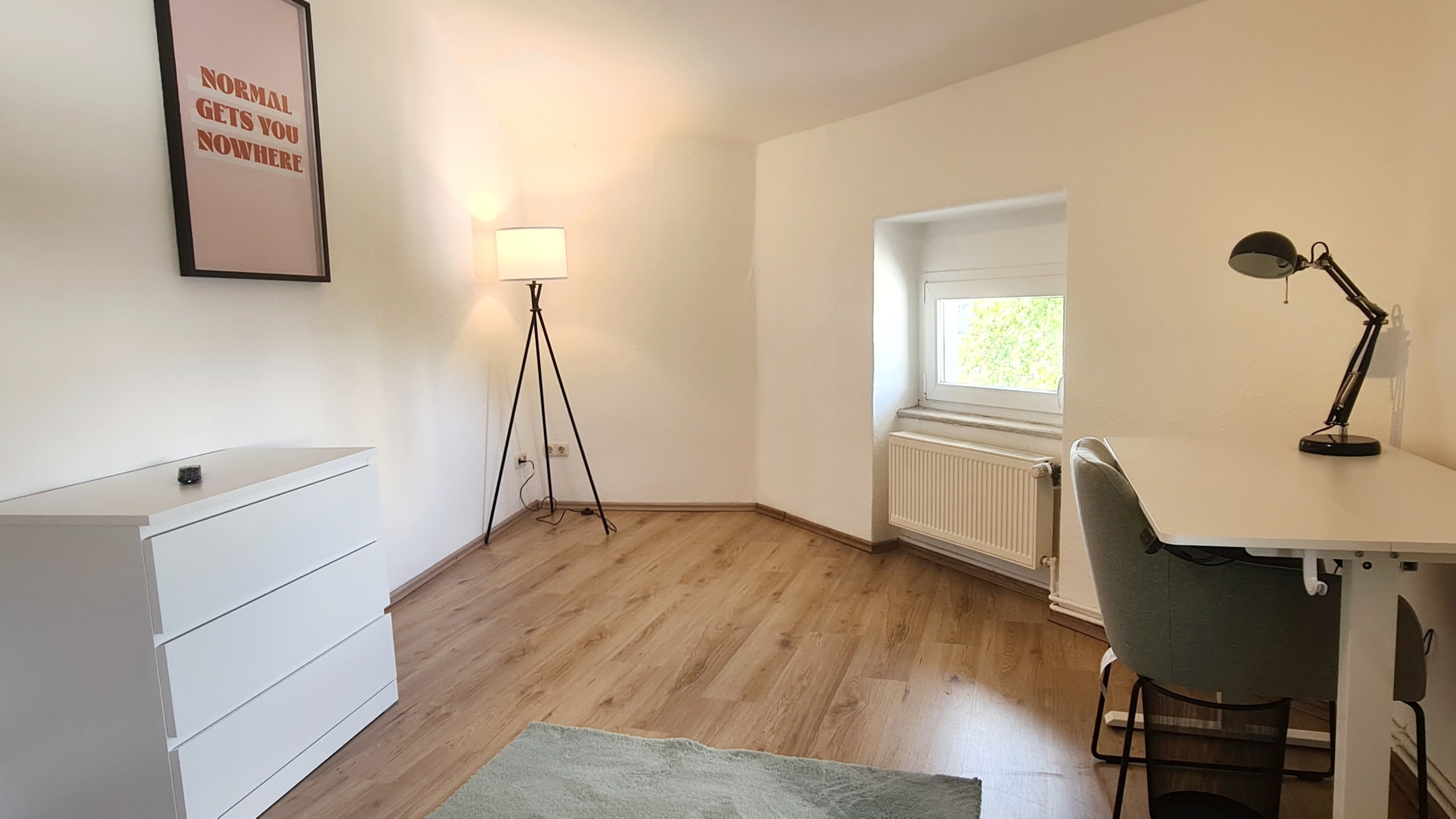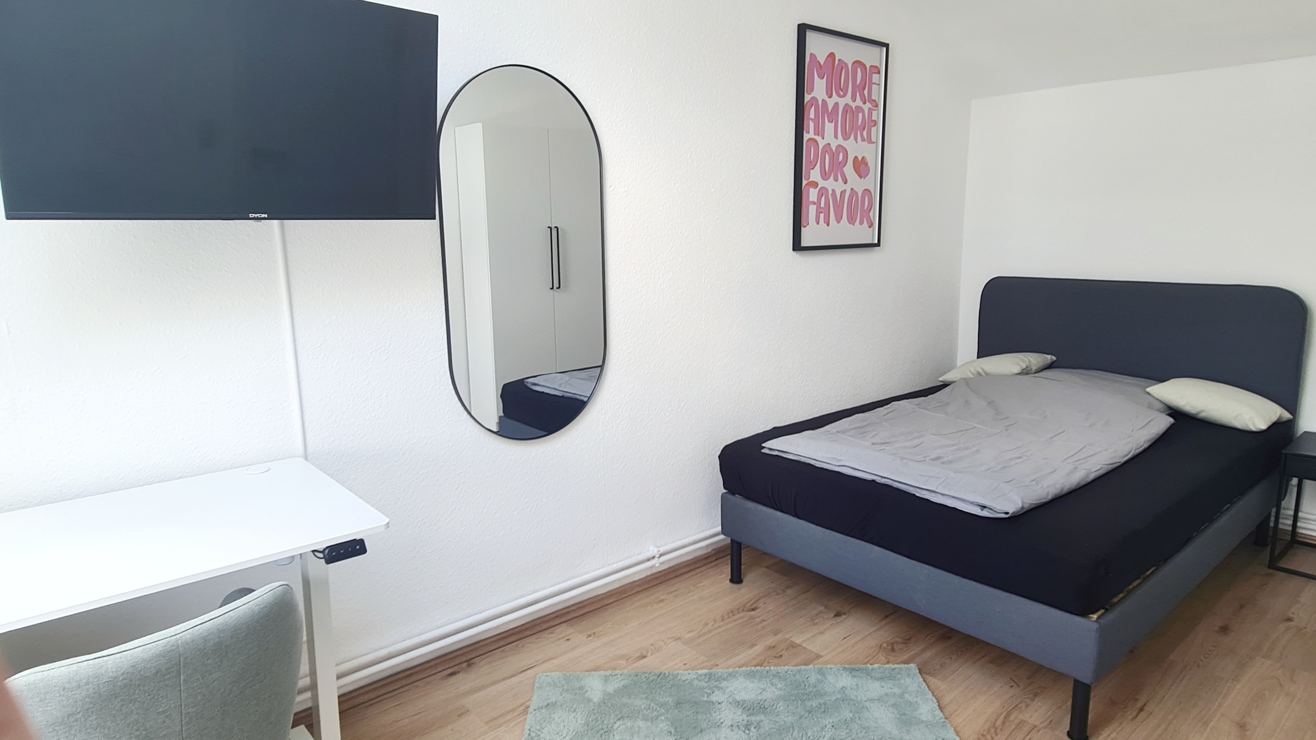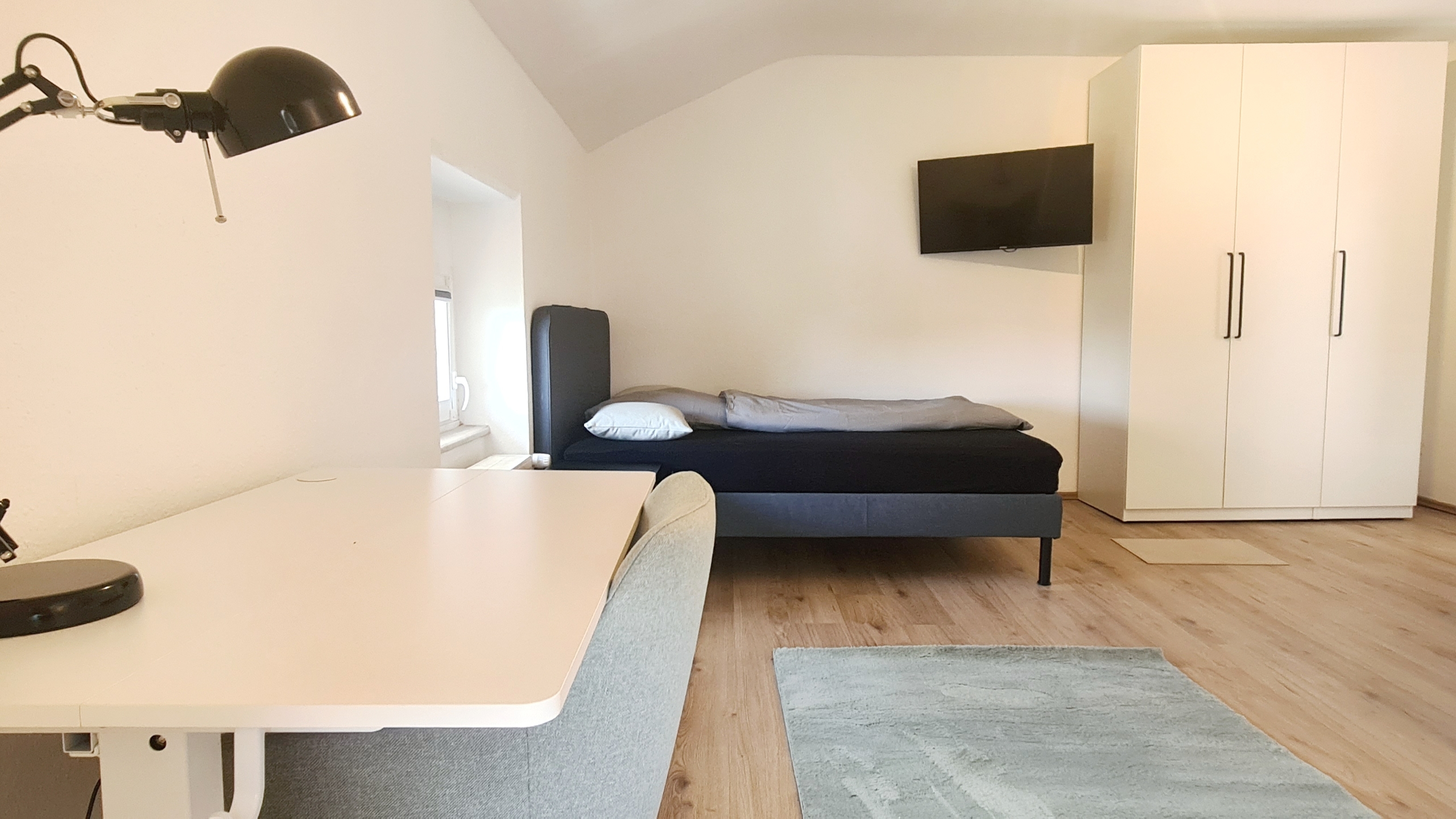 Alles modern möbliert, jedes Zimmer natürlich einzeln absperrbar. Zimmerausstattung (alle 4 Zimmer): Großes, gemütliches 1.40m Boxspringbett Verdunkelungsvorhänge und helle Fensterfronten für viel Tageslicht Großer Kleiderschrank in Hochglanzoptik Schreibtisch mit Stuhl und Lampe – ideal fürs Arbeiten oder Lernen Teppichläufer, moderne Beleuchtung und Wanddeko
