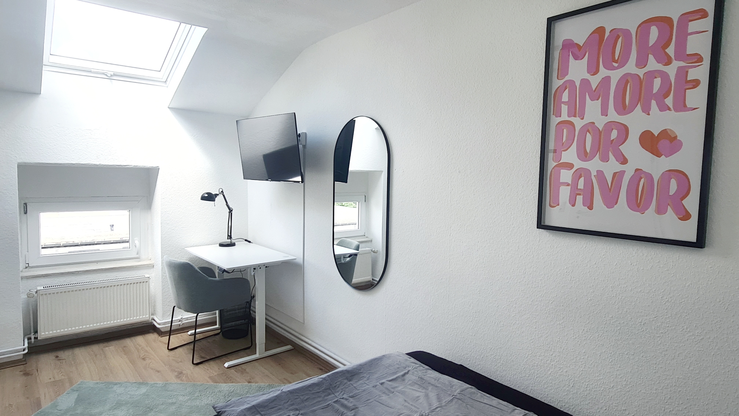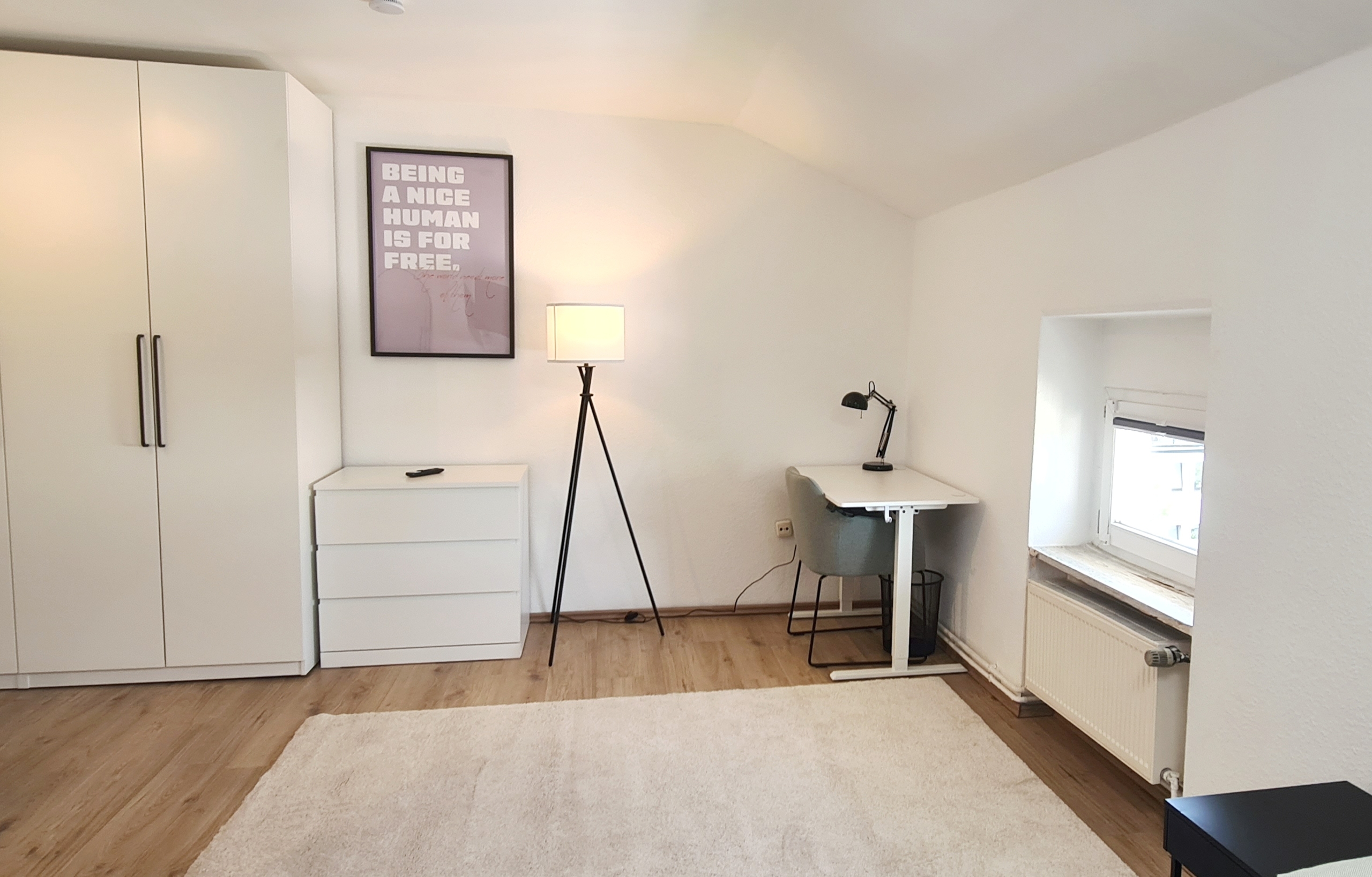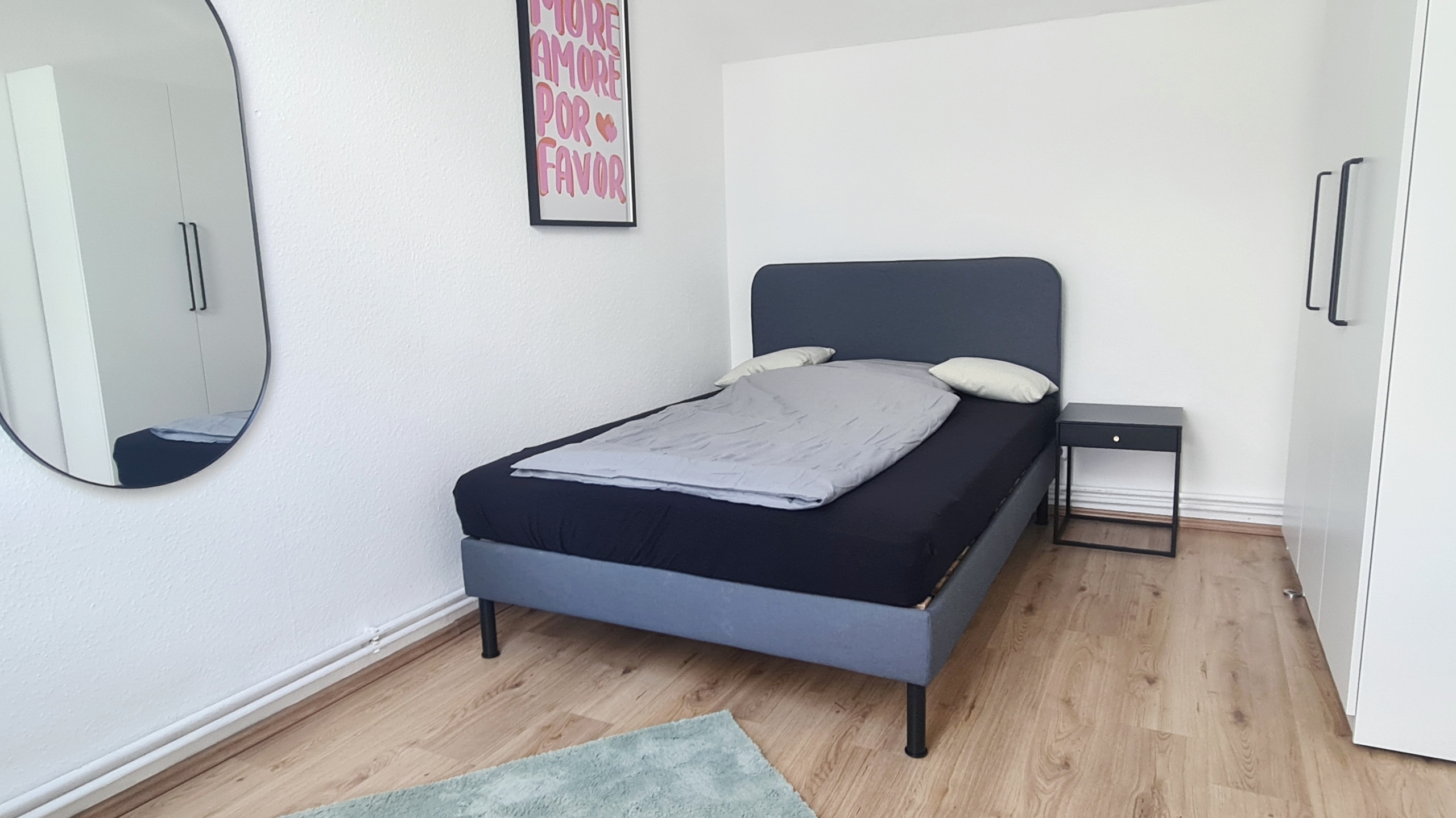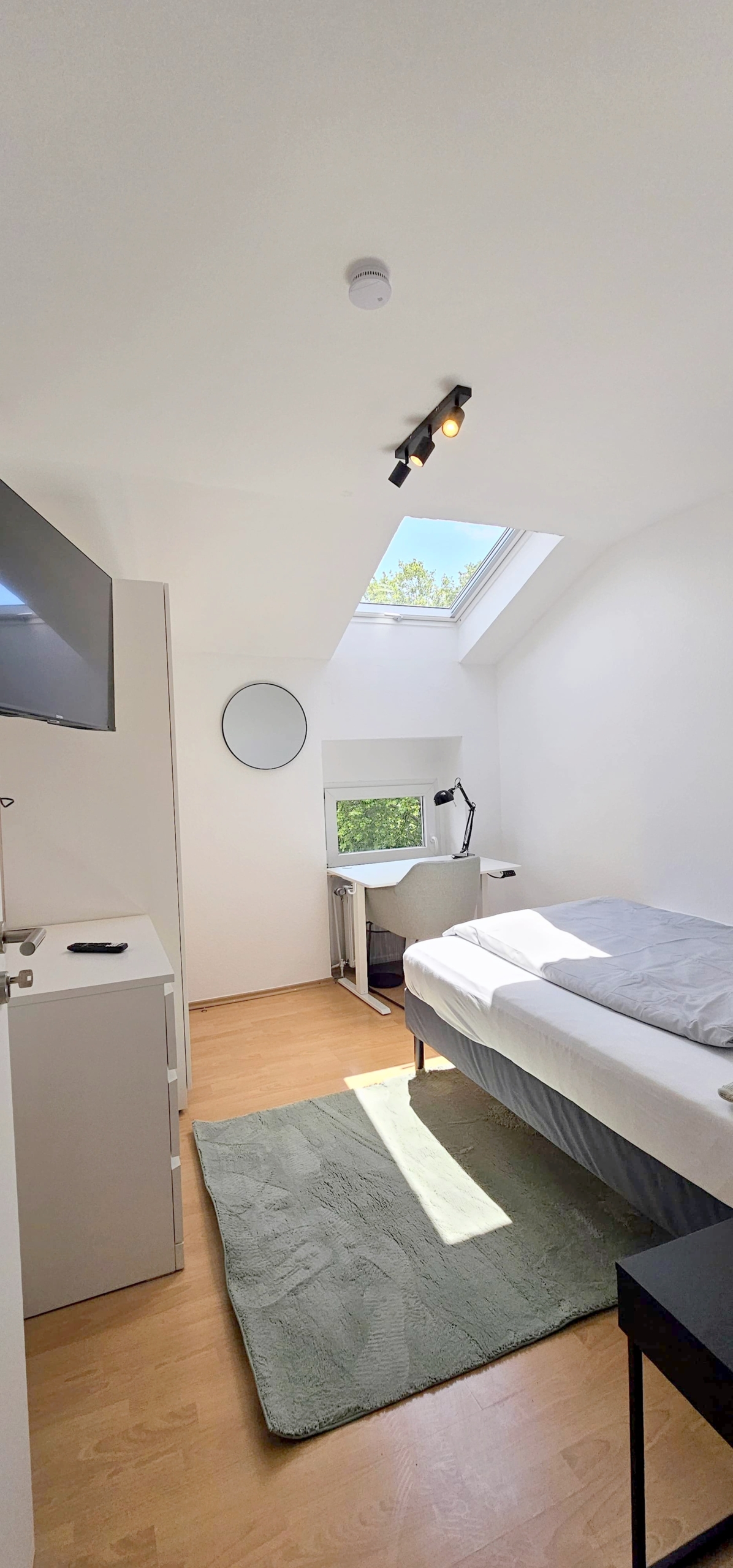 Alles modern möbliert, jedes Zimmer natürlich einzeln absperrbar. Zimmerausstattung (alle 4 Zimmer): Großes, gemütliches 1.40m Boxspringbett Verdunkelungsvorhänge und helle Fensterfronten für viel Tageslicht Großer Kleiderschrank in Hochglanzoptik Schreibtisch mit Stuhl und Lampe – ideal fürs Arbeiten oder Lernen Teppichläufer, moderne Beleuchtung und Wanddeko