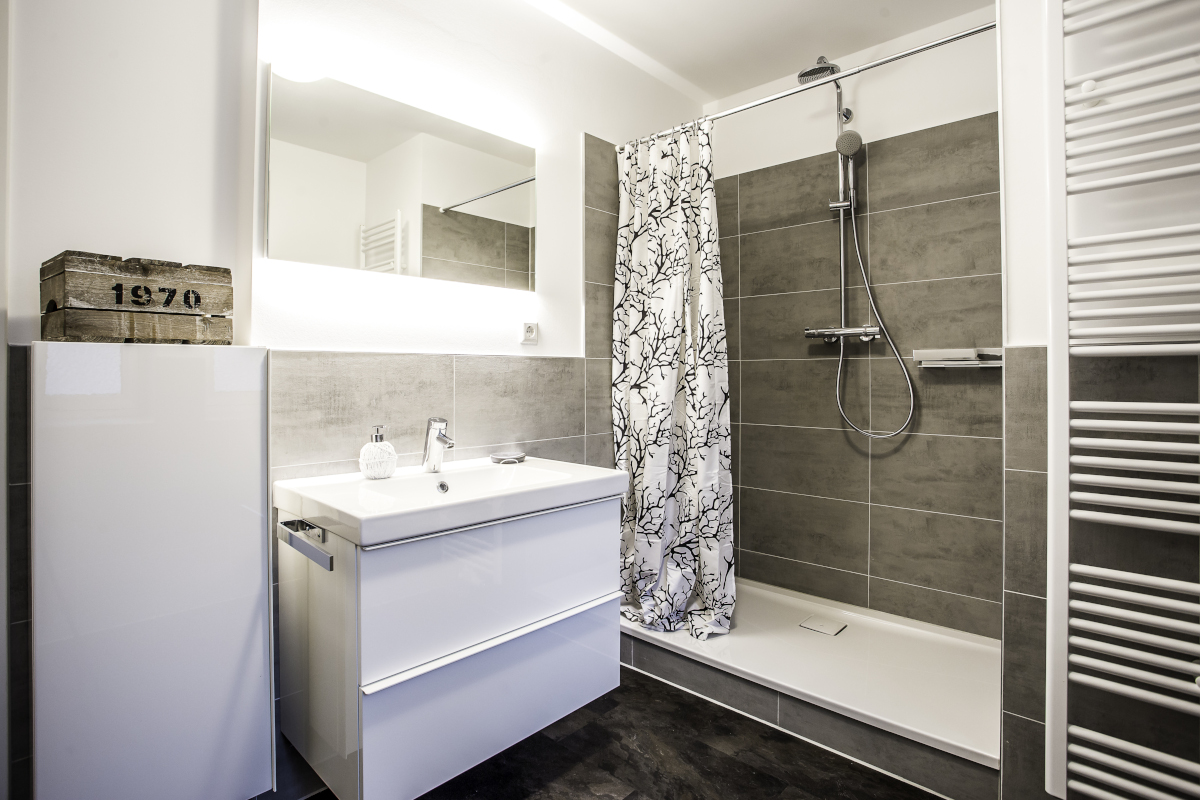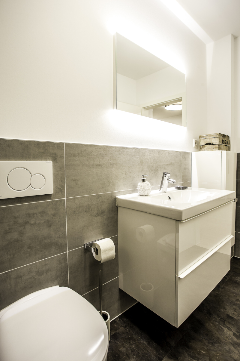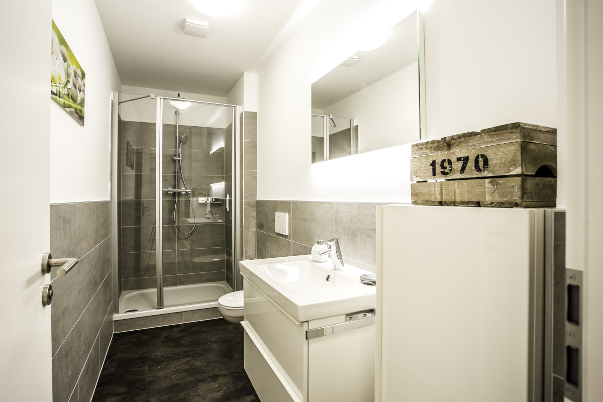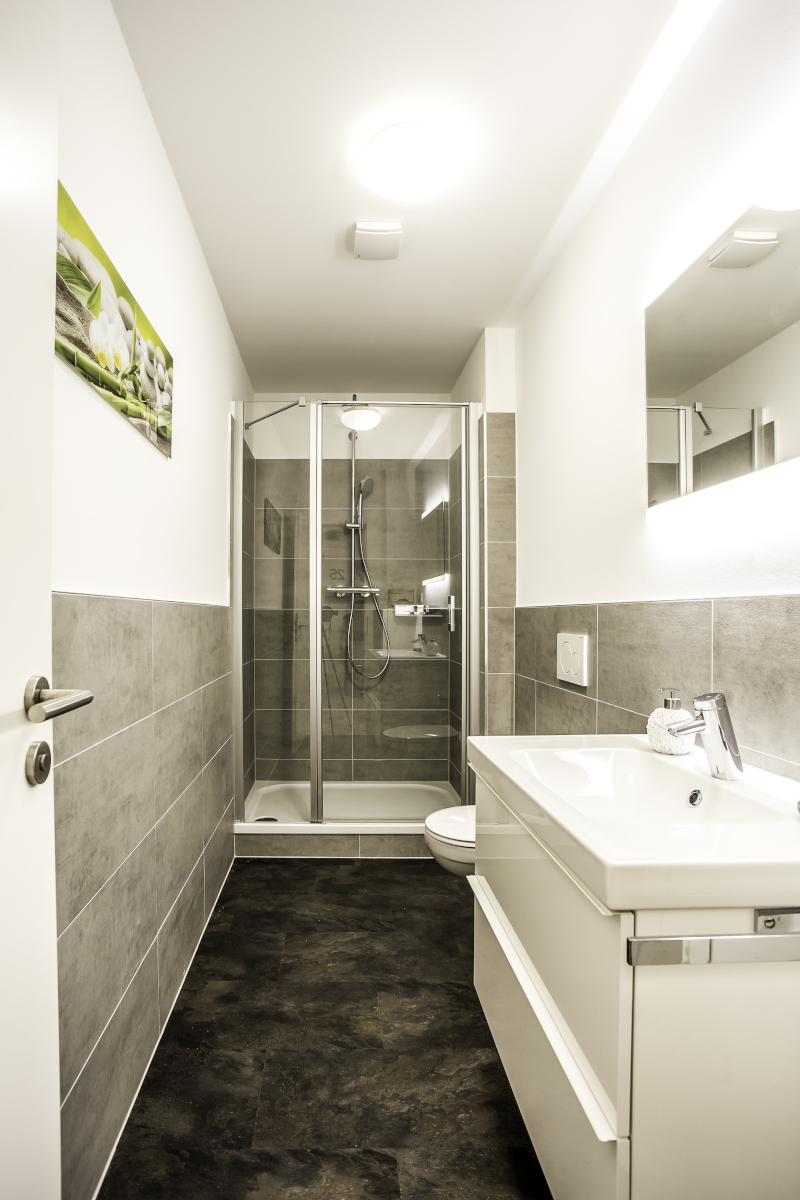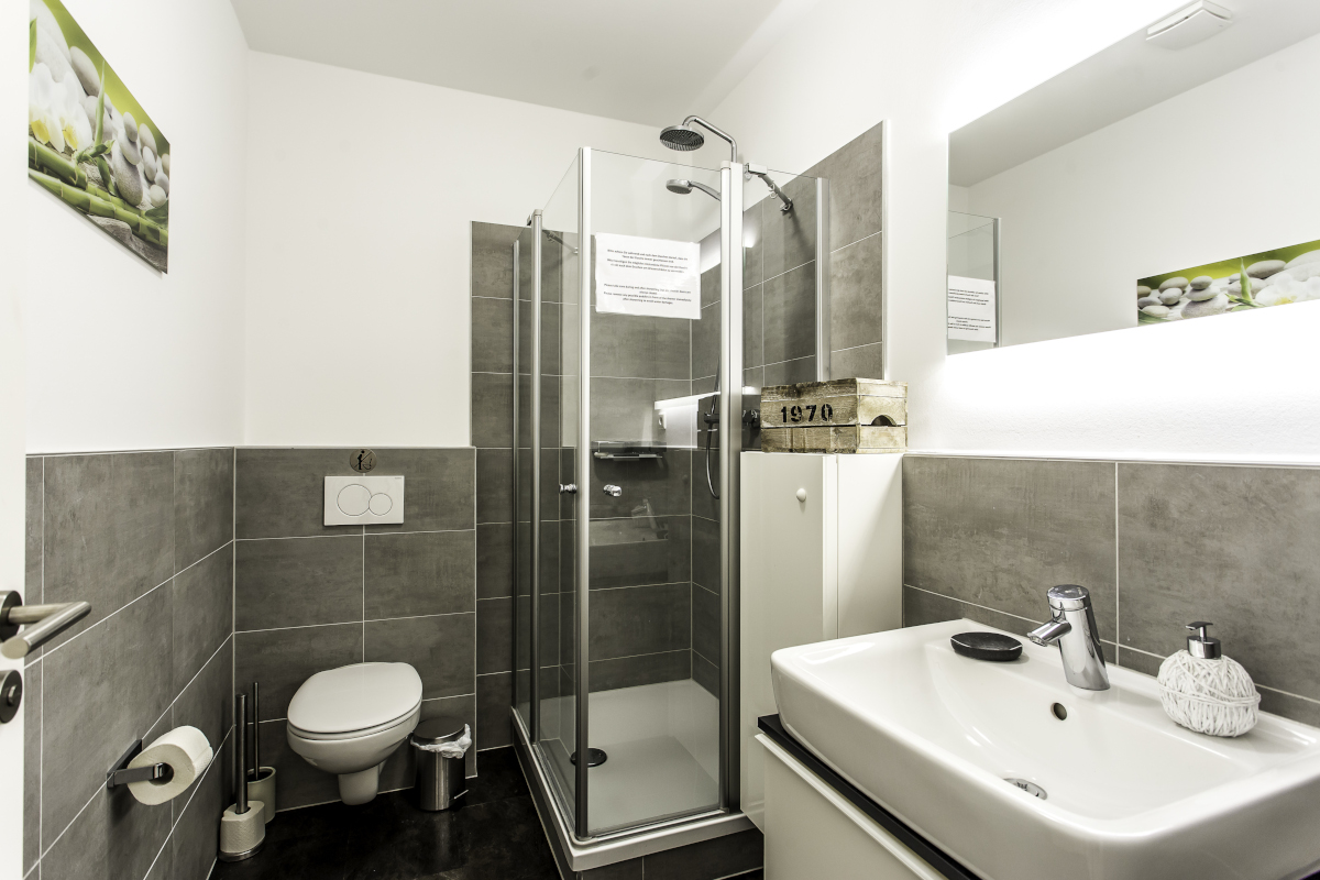 Darüber hinaus gibt es 2 Badezimmer mit Dusche und WC zur gemeinsamen Nutzung aller WG Bewohner. Münzwaschmaschine und Trockner werden ebenfalls gestellt.