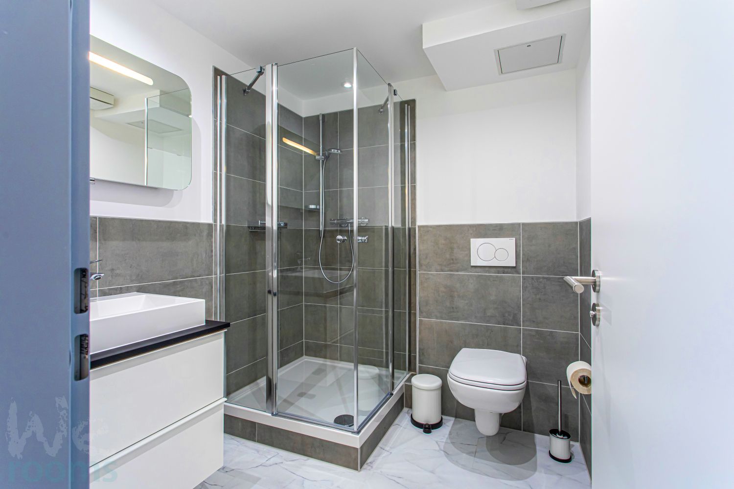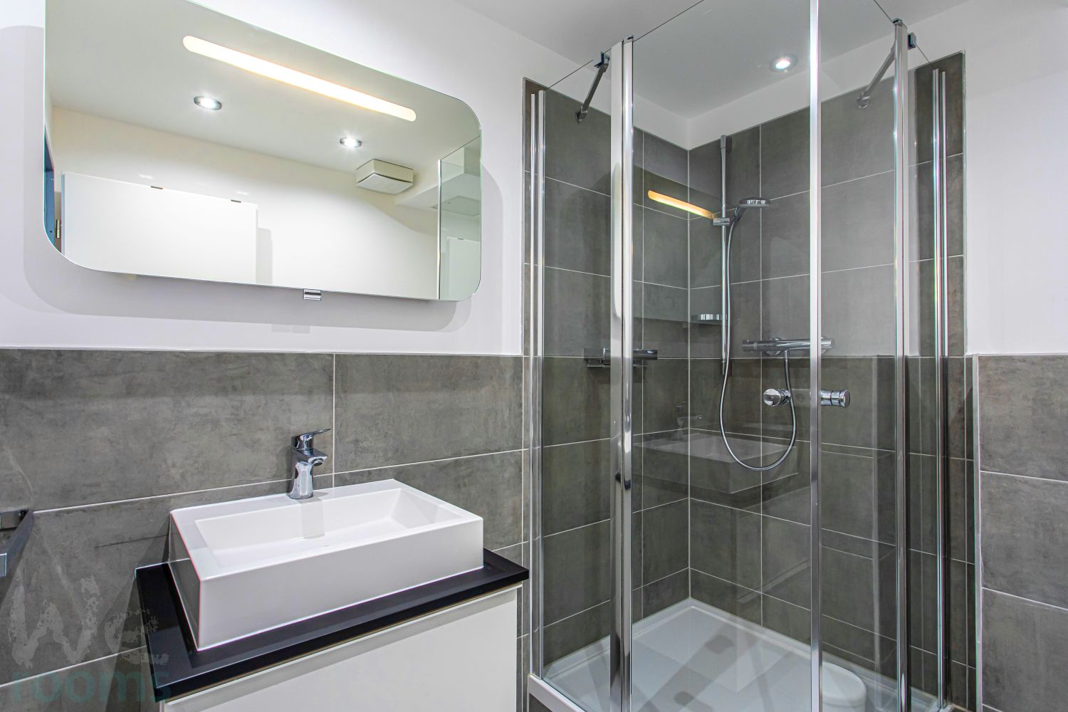 Insgesamt stehen auf der Etage 6 modern möblierte Zimmer zur Verfügung, welche einzeln vergeben werden. Die Wohnung für maximal 6 Bewohner ist mit einem hochwertigen Boden, weißen Wänden und zwei modernen Bädern in schicker Optik mit Dusche und WC zur gemeinsamen Nutzung ausgestattet.