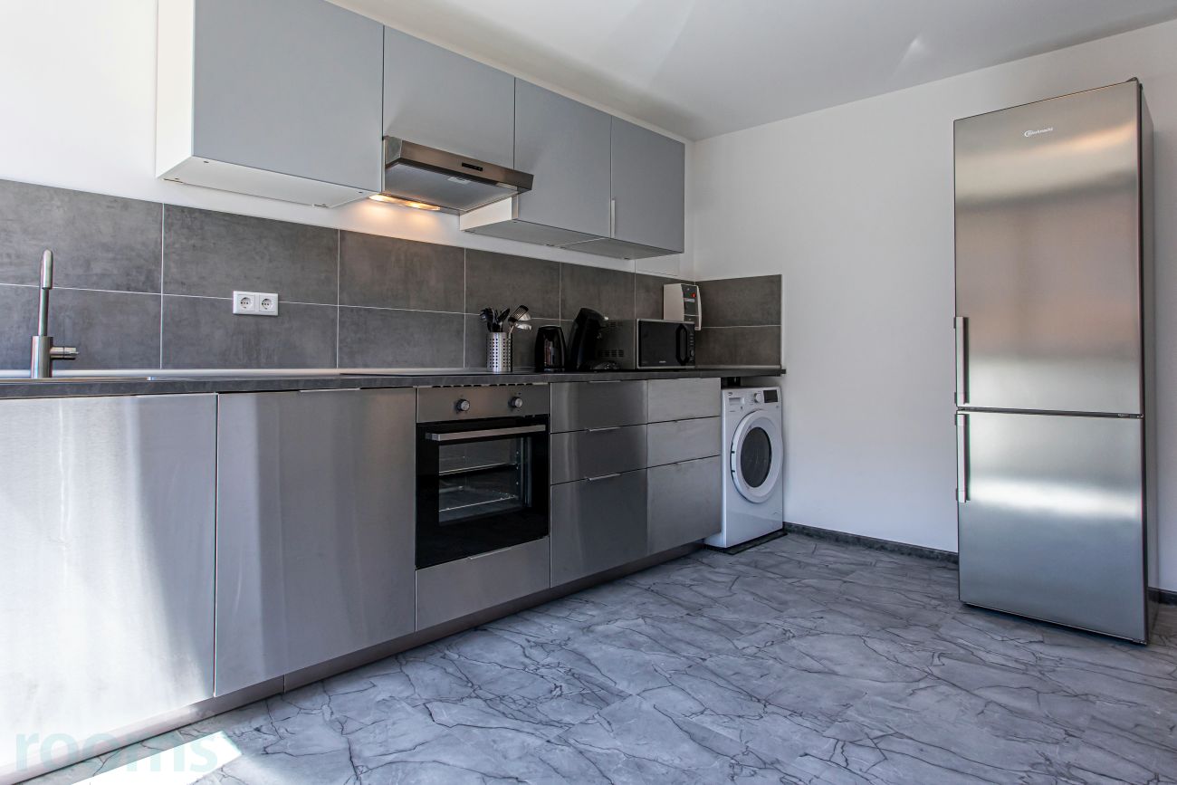 In der WG gibt es einen komplett mit Geschirr, Besteck und Kochgeschirr eingerichteten, offenen Küchenbereich mit Elektroherd, Spülmaschine sowie Sitzgelegenheiten für die gemeinsame Nutzung aller Mitbewohner. Des Weiteren steht den Bewohnern ein großer Kühl-Gefrierschrank und ein Münz-Waschtrockner zur Verfügung.