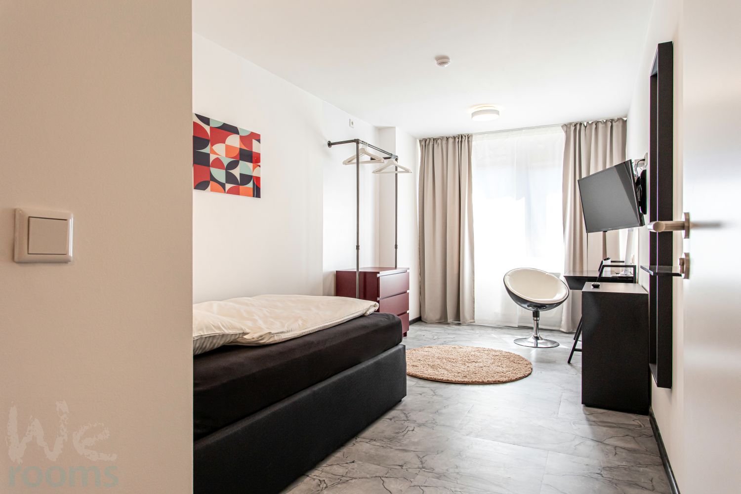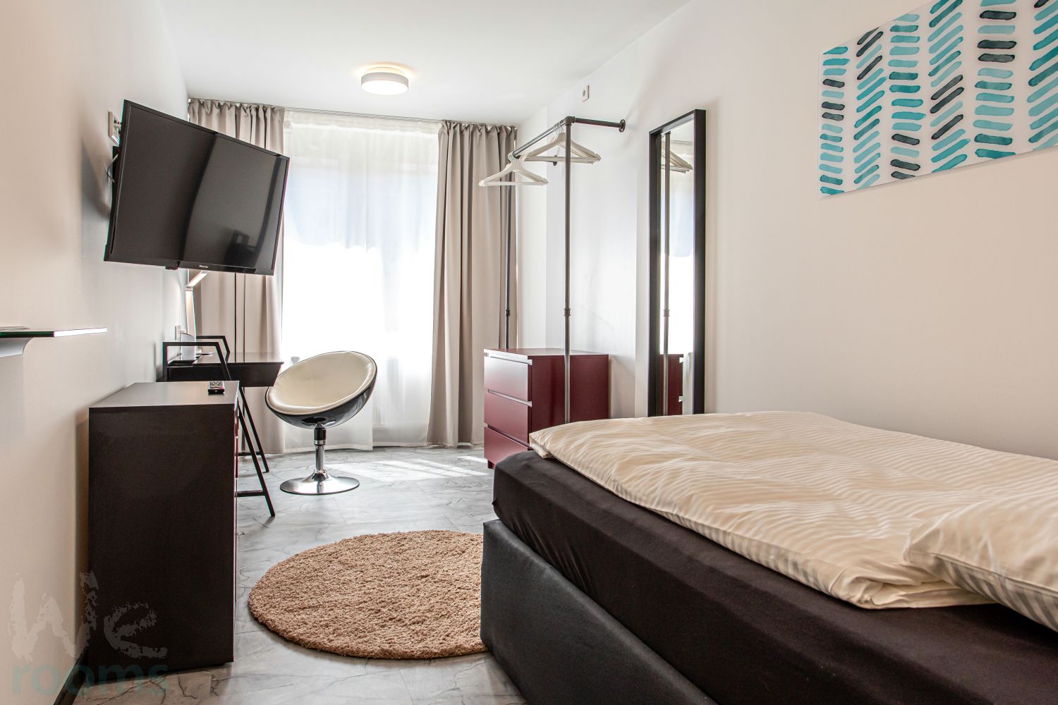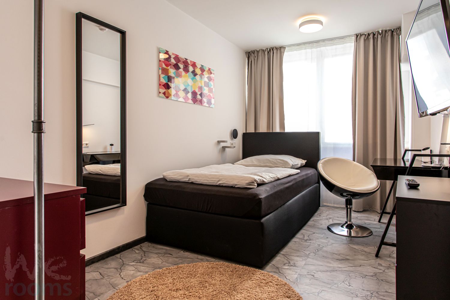 Die Zimmer beinhalten ein geräumiges Bett, einen offenen Kleiderschrank, Flachbild-TV, Nachttischablage, Schreibtisch, Schreibtischstuhl, Bettwäsche (Kopfkissen 80×80, Bettdecke 140×200) und die passenden Bettbezüge. Zusätzlich ist jedes Zimmer der Etage mit einem eigenen WLAN-Router mit ausgestattet.