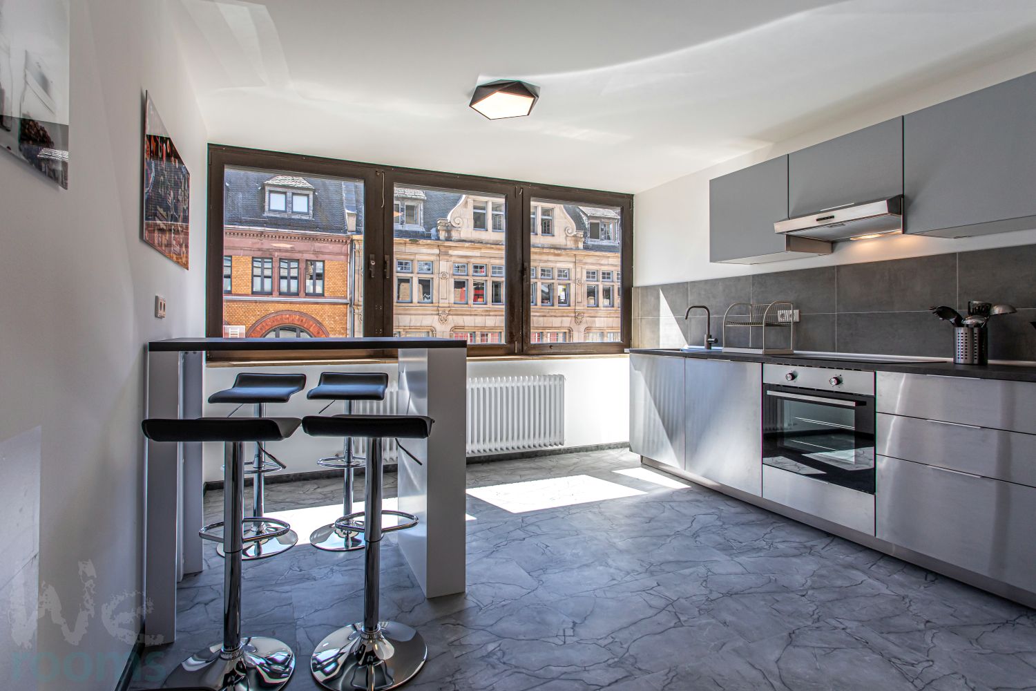 Mitten im Bahnhofsviertel befindet sich diese moderne und komplett möblierte 6er Wohngemeinschaft. WG Leben vom Feinsten! Im 3,.OG wurde hier eine schöne 6er WG saniert und neu eingerichtet. Ein Aufzug ist vorhanden. Ideal auch für Interessenten, die projektbezogen in der Stadt arbeiten, aber auch für Studenten + Praktikanten, die zentral wohnen wollen, eine gute Wahl.